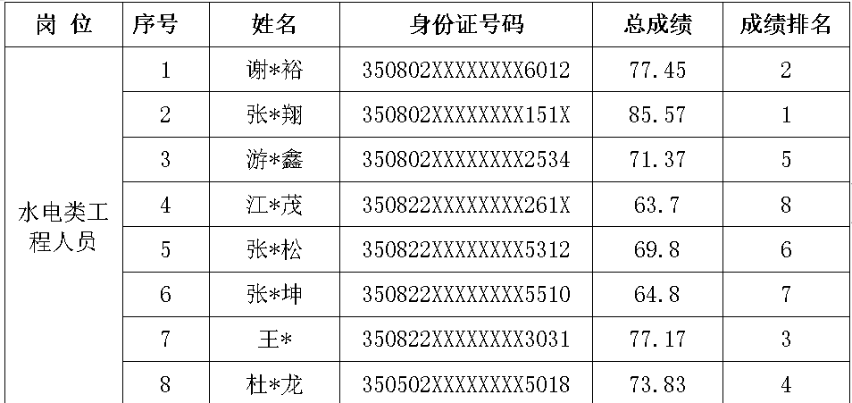 根據(jù)2025年8月25日《龍巖城發(fā)物業(yè)有限公司公開招聘項目管理處工作人員的公告》的有關要求,現(xiàn)將以下崗位成績排名予以公示: